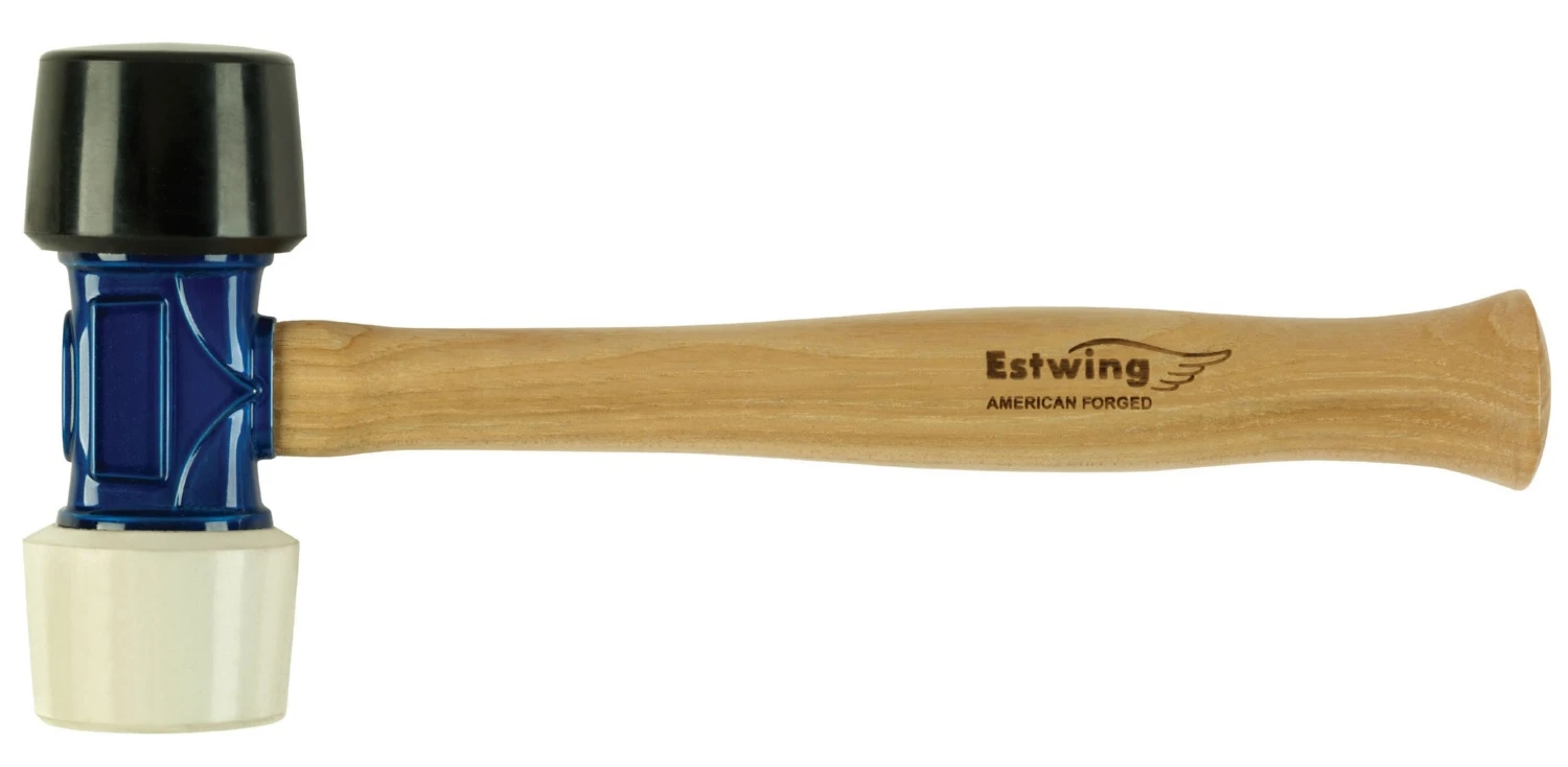 Estwing’s 24 oz. double faced hammer is used for assembling furniture, installing flooring and working on projects that require non-marring blows. The hammer features two different types of tips – one soft non-marring gray and one soft black – designed for various tasks. Genuine top grade 12 in. hickory handle with triple wedge construction.