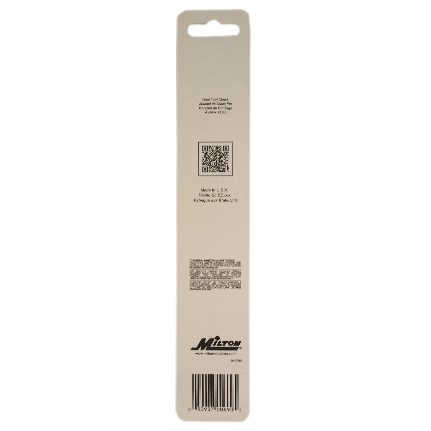 Milton (S-690) 1/4″ FNPT Dual Head Air Chuck: 1/4″ female national pipe thread. Maximum air pressure of 150 pounds per square inch. Closed/sealing type air chuck