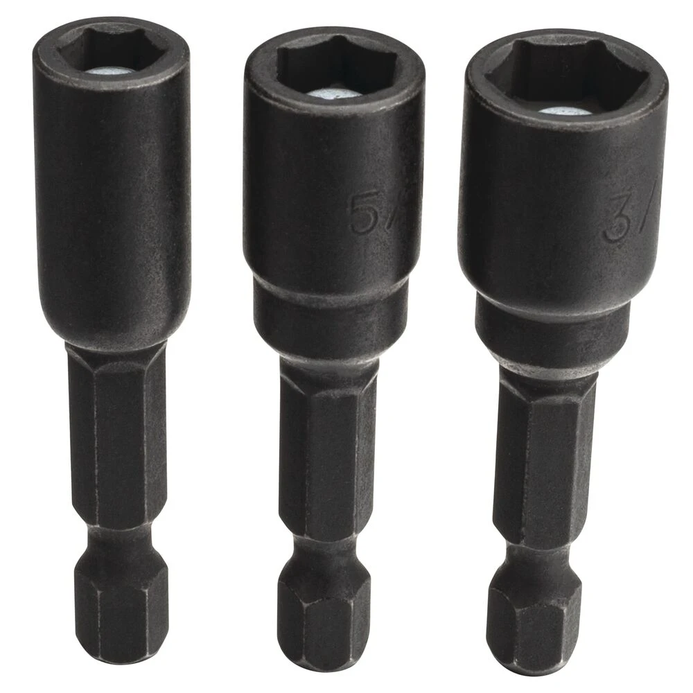 3 PC NUT DRIVER,Impact rated design engineered for use in impact drivers,Industrial strength magnet maximizes fastener retention,Recessed corners drive on flats minimizing metal shavings build up,Application: wood,Includes: (1) 1/4-in x 1-7/8-in nut driver; (1) 5/16-in x 1-7/8-in nut driver and (1) 3/8-in x 1-7/8-in nut nut drivers,,.