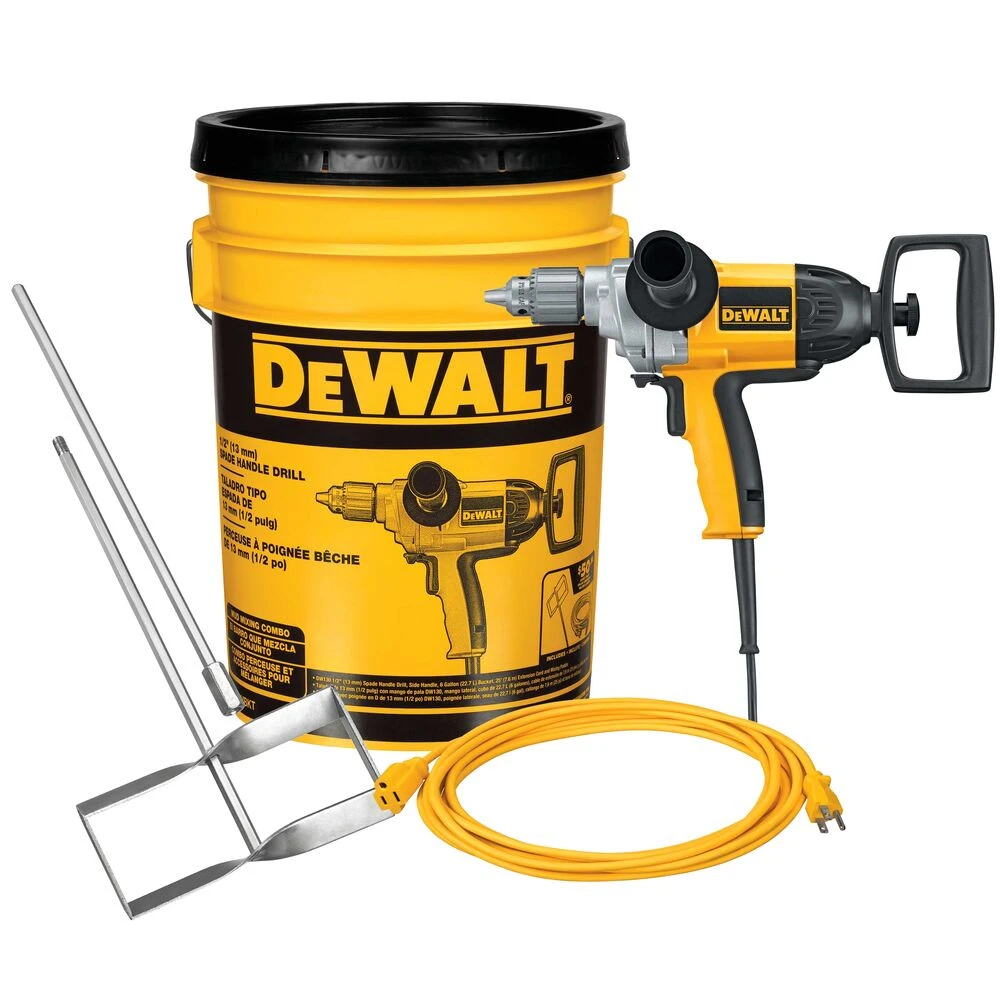 Built for rugged applications where high torque is required, the DEWALT DW130V 9 amp 1/2-inch drill with spade handle is ideal for drilling applications that require downward pressure. Additionally, the three-position side and two-position rear handles are adjustable so you can move them to ensure proper leverage. The DW130V produces up to 550 RPM of torque to efficiently meet the needs of a wide variety of applications, including drilling and mixing paint and drywall mud