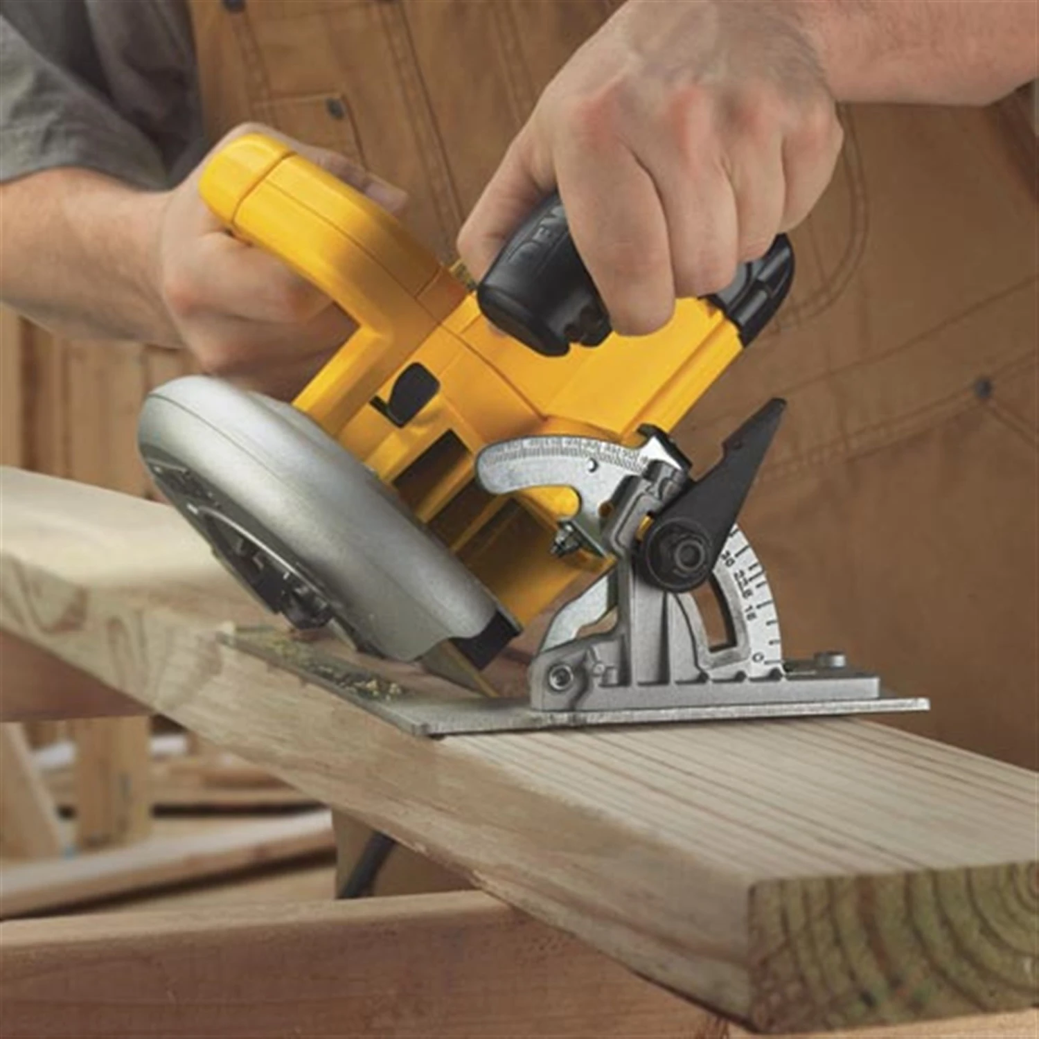 The DEWALT 15 Amp 7-1/4-inch Lightweight Circular Saw may be light in weight at only 8.8 lbs. but packs plenty of power with a 15 Amp motor that can handle your toughest applications. Loaded with features that make cutting quick and easy, this saw has a 2-9/16-inch depth of cut capacity for versatile use and an anti-snag, ball-bearing lower guard for smooth guard operation and added durability. The clear line of sight helps give you blade visibility from any angle and with the integrated dust blower, your line of sight is kept clean for easier and more accurate cutting. Ideal for use on the job or for DIY projects or workshop projects, this saw is a breeze to use and built for long-lasting use.