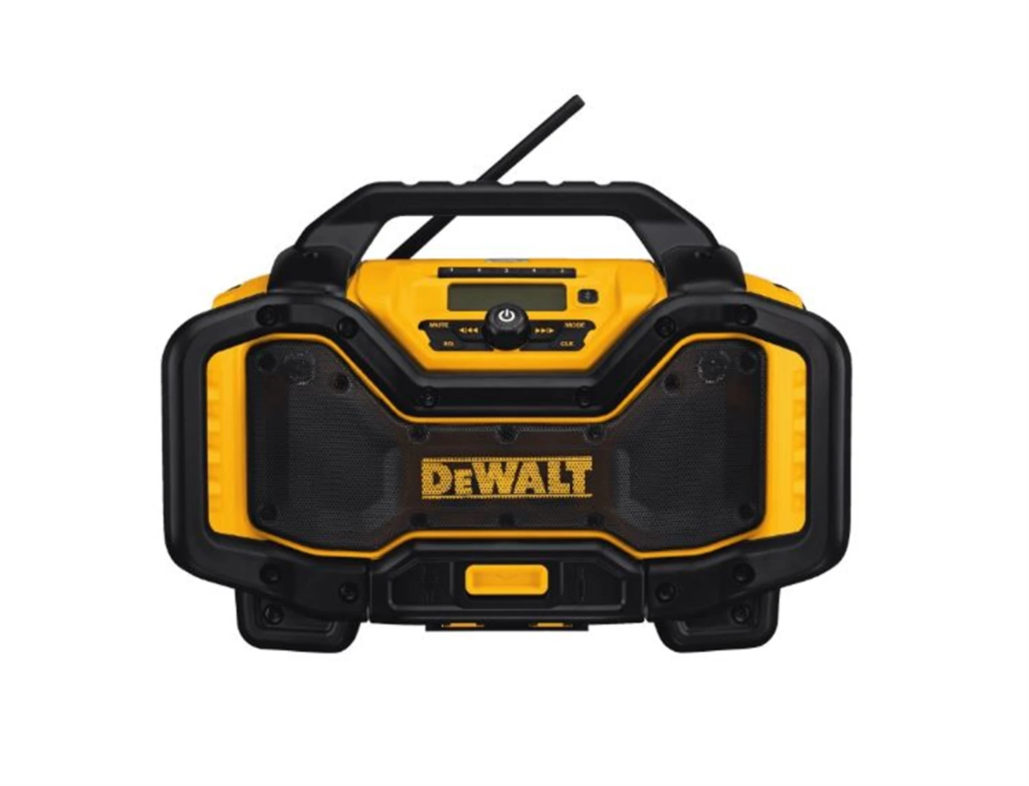 The DCR025 is designed to be the most versatile Jobsite Radio Charger on the market. The unit is able to run off and charge all DEWALT slide pack battery packs including 20V and FLEXVOLT packs at 3 Amp when plugged into an AC outlet. The unit is designed to include woofers, tweeters and air ports to provide clear and rich sound at all volume levels. An oversized device storage box protects devices from worksite conditions and includes an Aux and 2.1 Amp USB charging port for convenient device charging. 2 AC Power outlets on the side of the unit allow you to plug in additional tools or chargers without occupying additional outlets on the wall. AVRCP (Audio Visual Remote Control Protocol) allows you to control your device from the radio interface so you can keep the device in a safe place and skip to the next song or hit replay on the radio interface.