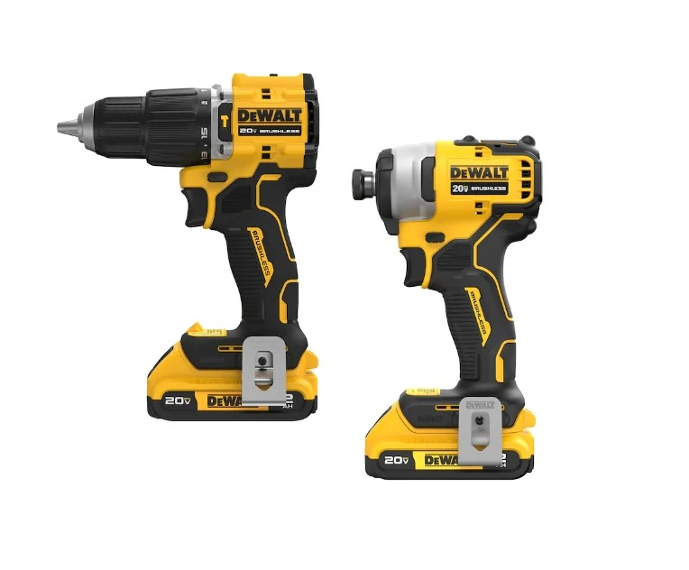 This 20V MAX Brushless Atomic 2-Tool Combo Kit includes a 20V MAX Compact Hammer Drill (DCD799) and a 20V MAX Compact Impact Driver (DCF809) along with two 2Ah batteries, a charger and a bag. The DCD799 boasts best in class length under 6 to allow users increased accessibility in tight spaces while maintaining Hammer Drill functionality. In addition, the brushless motor provides up to 380 UWO to complete a variety of drilling use cases and the 2-Speed Transmission has 15 clutch settings to optimize based on users applications. The DCF809 is the most compact DEWALT Impact Driver in the 20V MAX platform at 5.1-inch front to back. The Impact Driver features a high performance brushless motor that delivers 1700-inch-lbs. of torque and 3 LED lights to provide optimum illumination in dark spaces as you work.