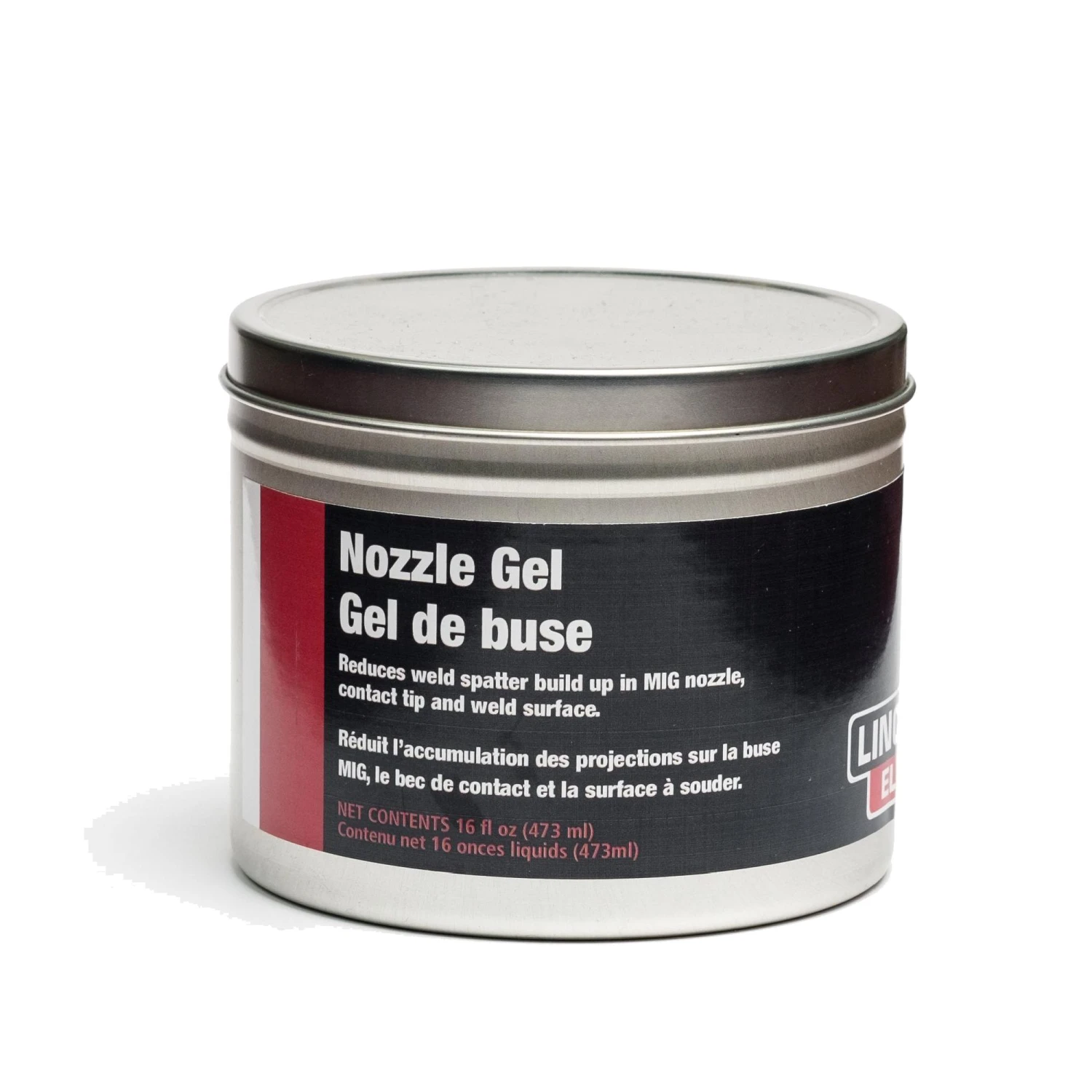 Lincoln Electric Nozzle Gel. Helps prevent spatter build-up on MIG nozzles and contact tips. Will not block orifices, non-toxic, non-flammable and odorless – 16 oz. (0.47 ltr) jar.
