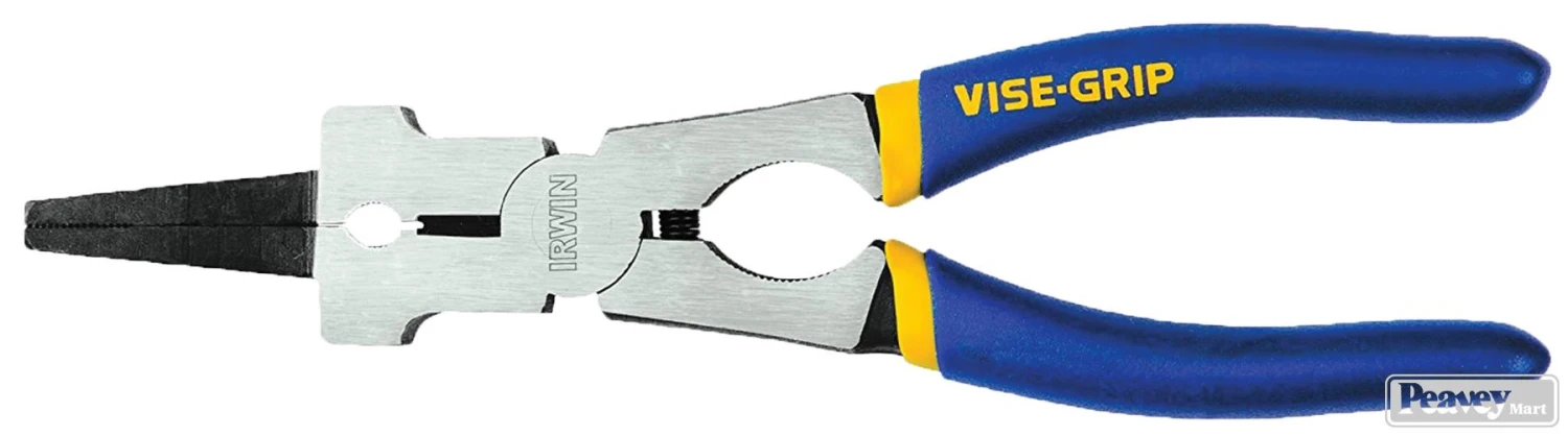 Features specially designed nose for efficient removal of welding spatter. Induction-hardened cutting edge stays sharp longer. Multiple jaws for drawing out wire and removing of installing tips and nozzles. Hammer designed for light welding gun maintenance. Spring-loaded for ease of use. Dipped grips for superior comfort.