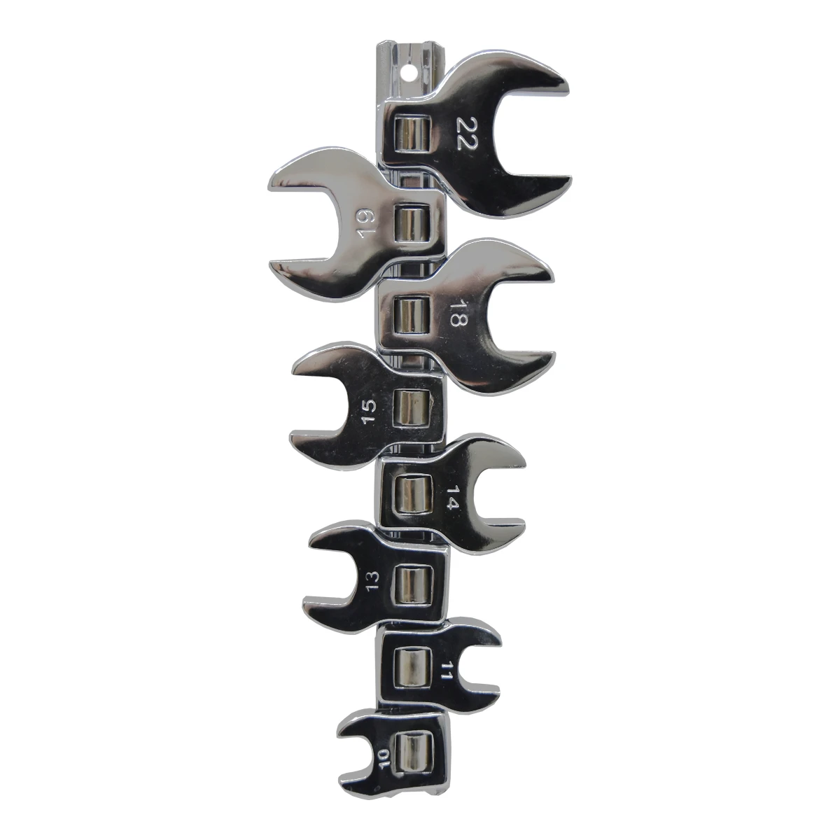 8PC Crow Foot Wrench Set Metric Carbon Steel, Size: 10mm; 11mm13mm14mm; 15mm; 18mm; 19mm; 22mm, Carbon steel. Drop forged, Heat treated.